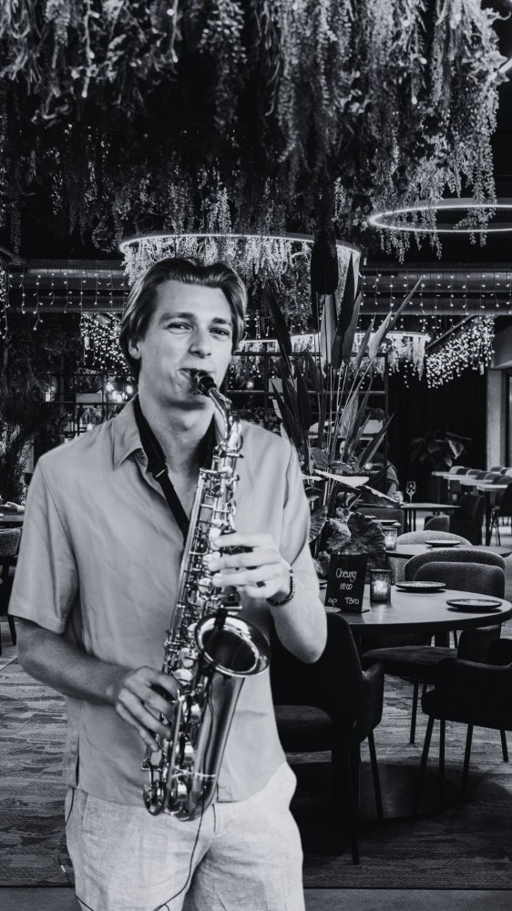 Terwijl je geniet van elk gerecht, vult saxofonist Robin Busio de ruimte met sfeervolle live muziek. Een perfecte combinatie van ontspanning, smaak en gezelligheid.