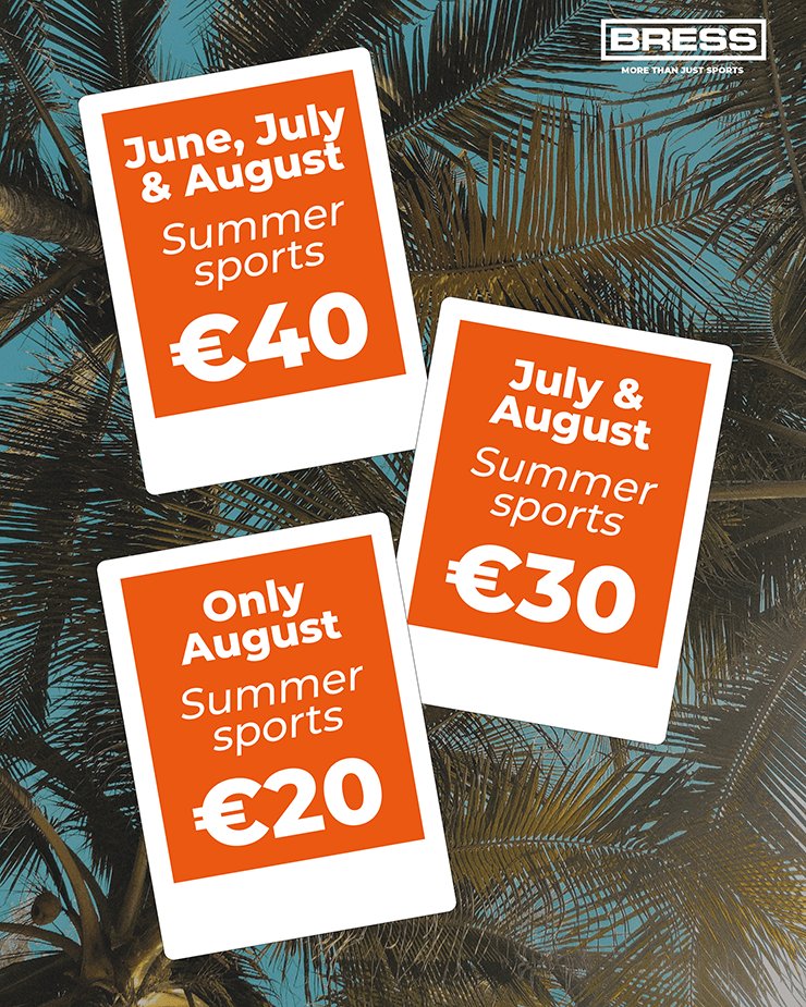 In juli en augustus heeft BRESS een zomerrooster: geen standaardlessen of teamsporten bij BRESS, maar wel een unieke mix van activiteiten - gratis of met exclusieve kortingen!