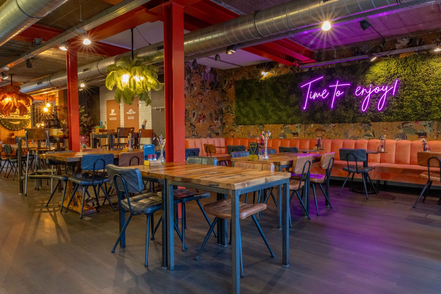 Madame Délicieux Brasserie & Delicatessen heeft haar deuren eind April 2016 enthousiast geopend, Een geheel nieuw concept en helemaal van deze tijd. Gevestigd in het voormalige ABN AMRO Pand in Made, Nieuwstraat 53. Bij het bekende pleintje 'Den Deel'. Het voormalige ABN AMRO pand is omgetoverd tot een fantastische horeca gelegenheid. Door de stoere industriële, maar toch warm aangeklede look voelt iedereen zich hier meteen welkom en thuis en dat is ook zeker de bedoeling. De robuuste en bijzondere kluis is ook daadwerkelijk in stand gebleven. Hierin is een praktische koeling gemaakt waaruit wij onze heerlijke gerechten bereiden. Lees verder