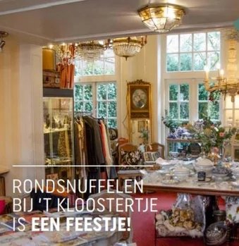 Bij ’t Kloostertje vind je onder meer prachtig vintage servies en glaswerk, bijzondere brocante cadeautjes en de mooiste items voor je interieur.