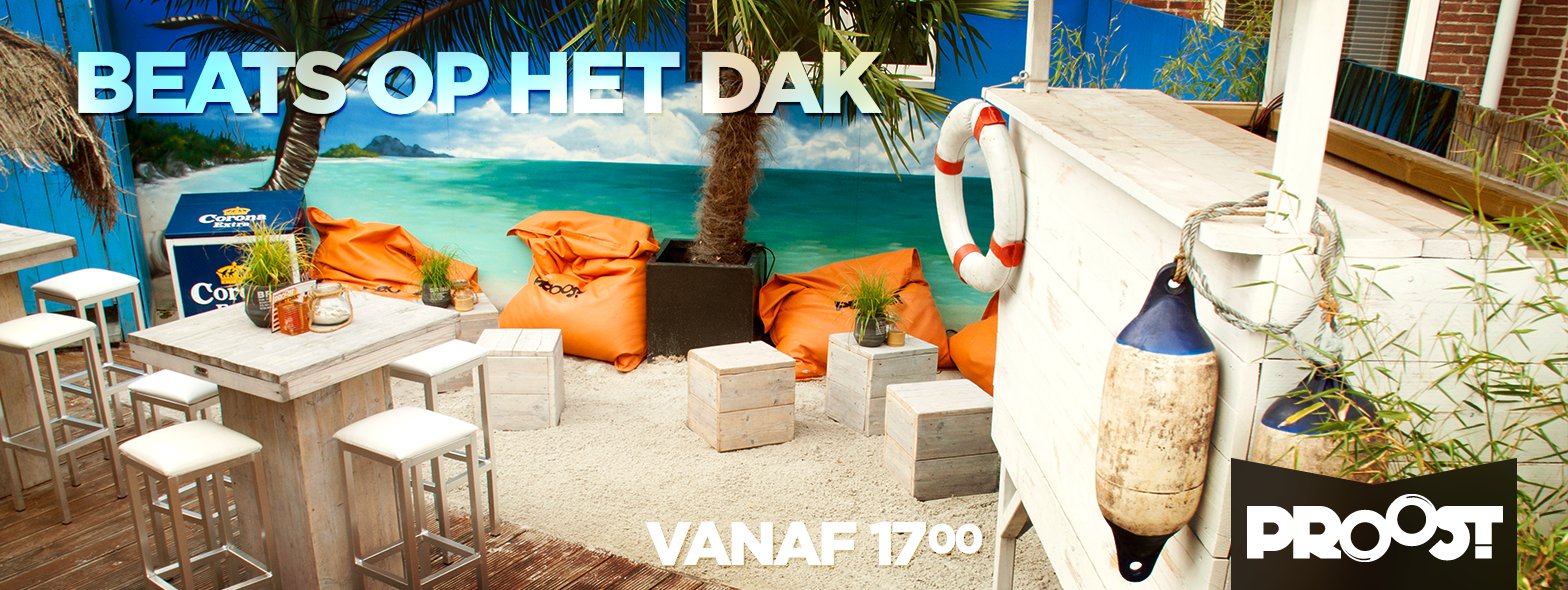 Proost opende in 12 juli vorig jaar haar tropische dakterras. Het dakterras in biedt ruimte aan circa 150 personen. Het thema's is overduidelijk; strand!
