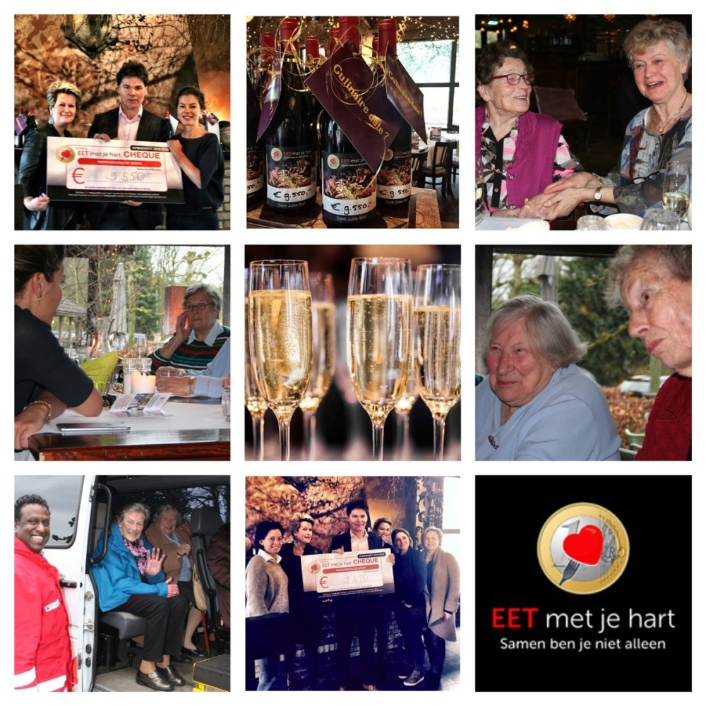 Tijdens een sfeervolle lunch voor 20 ouderen in Uitspanning De Fazanterie in Ulvenhout, werd de eindopbrengst van de restaurantactie bekendgemaakt. Burgemeester Paul Depla overhandigde een cheque van € 9.550,- aan het team van EET met je hart.