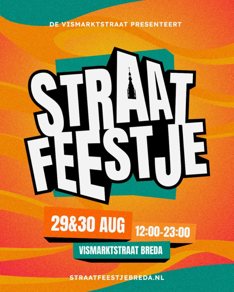 Op vrijdag 29 en zaterdag 30 augustus 2025 verandert de Vismarktstraat in Breda in een openluchtfestival tijdens de eerste editie van het STRAATFEESTJE. Een initiatief van de horecaondernemers uit de straat zelf. Waar de straat normaal ‘s avonds tot leven komt, begint het feest nu al om 12:00 uur. Twee dagen lang is de straat het podium met optredens van lokaal talent zoals Hitjesdag DJ Team én grotere namen als Fake Tits, SMÈRRIG Diskjochies, Team Rush Hour en Kruzo.