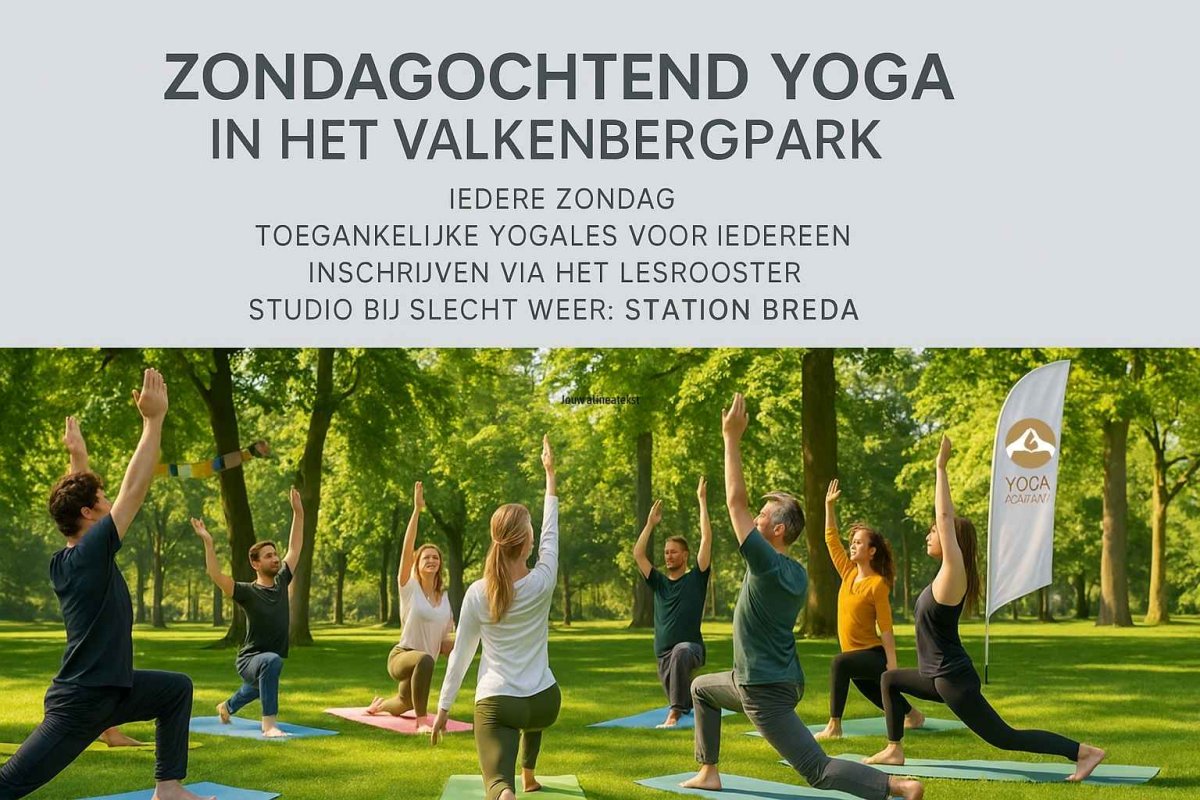 Elke zondag (bij droog weer) om 10:00 uur organiseert Yoga Academy 'You are the Buddha' een zachte, toegankelijke yogales onder de bomen in het Valkenbergpark. De les combineert ademhaling, beweging en mindfulness en is geschikt voor iedereen. Je herkent de groep aan de witte beachflag bij het T-huis.